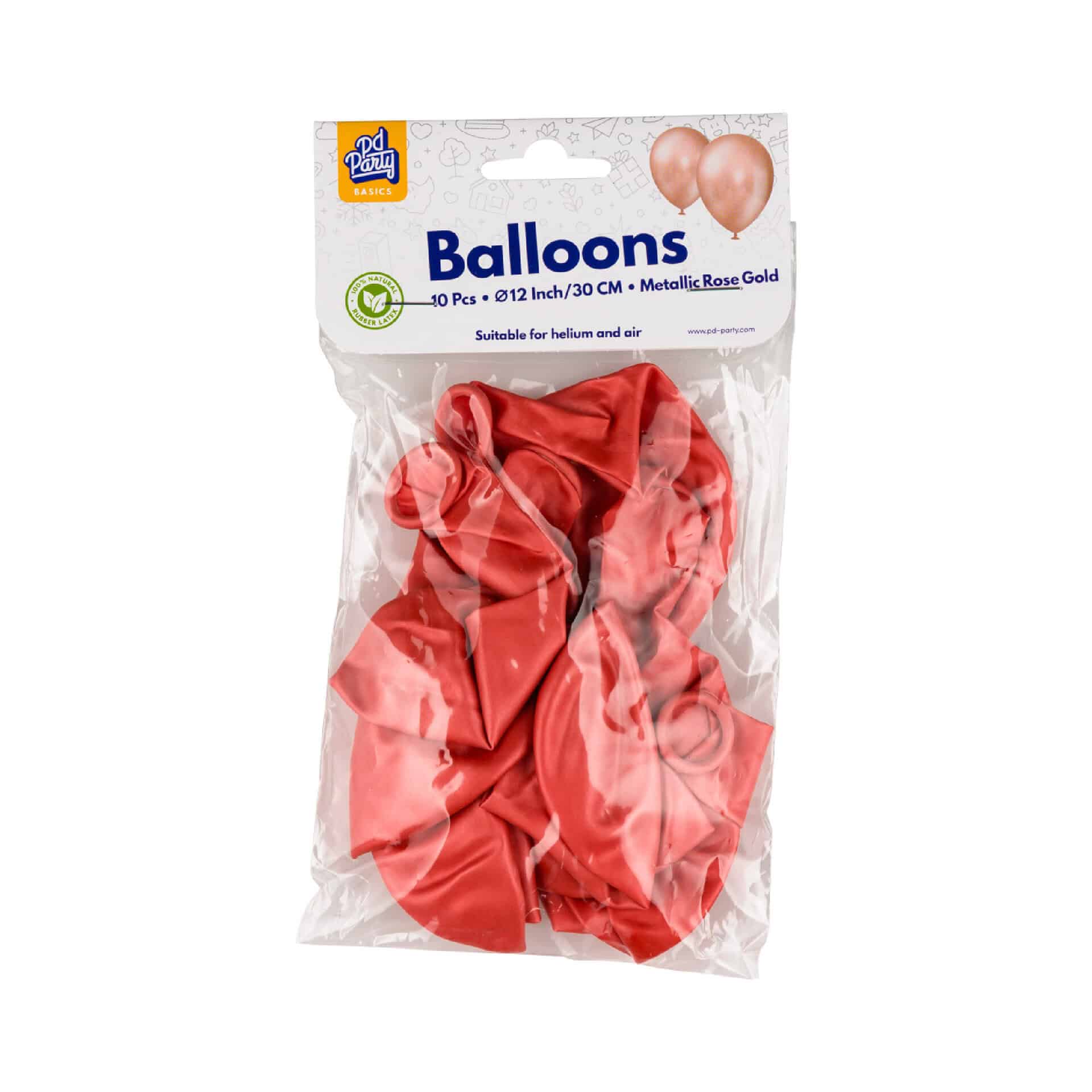 Edulliset PD-Partyn ilmapallot kymmenen kappaletta pussissa.