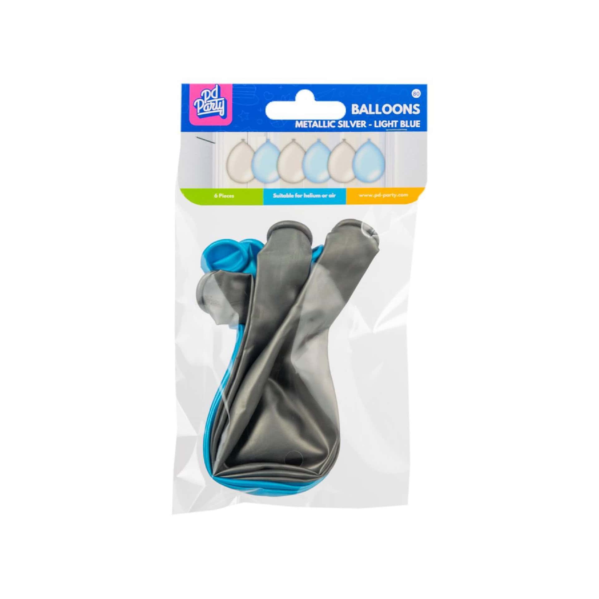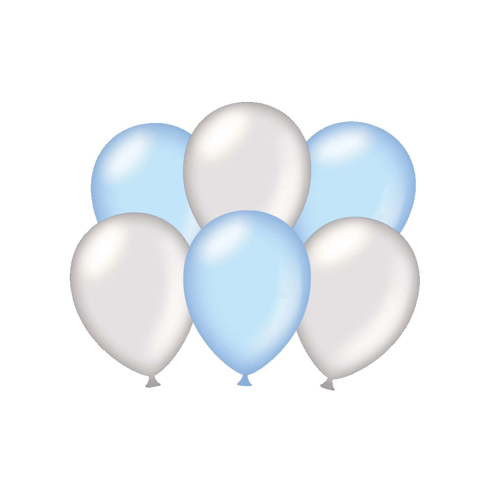 6 x metallikiilto hopea ja vaaleansininen ilmapallo