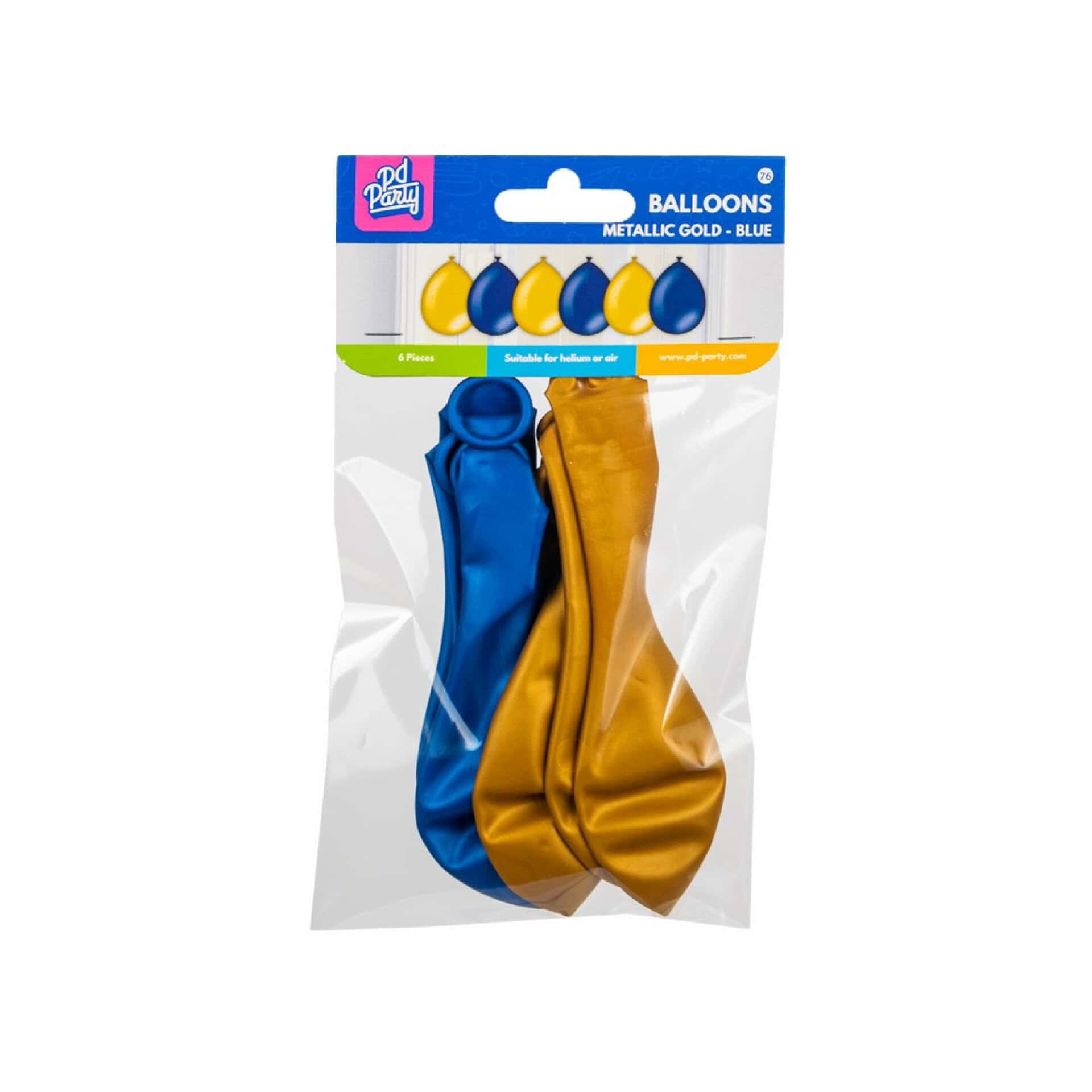 6 x metallikiilto kulta ja sininen ilmapallo