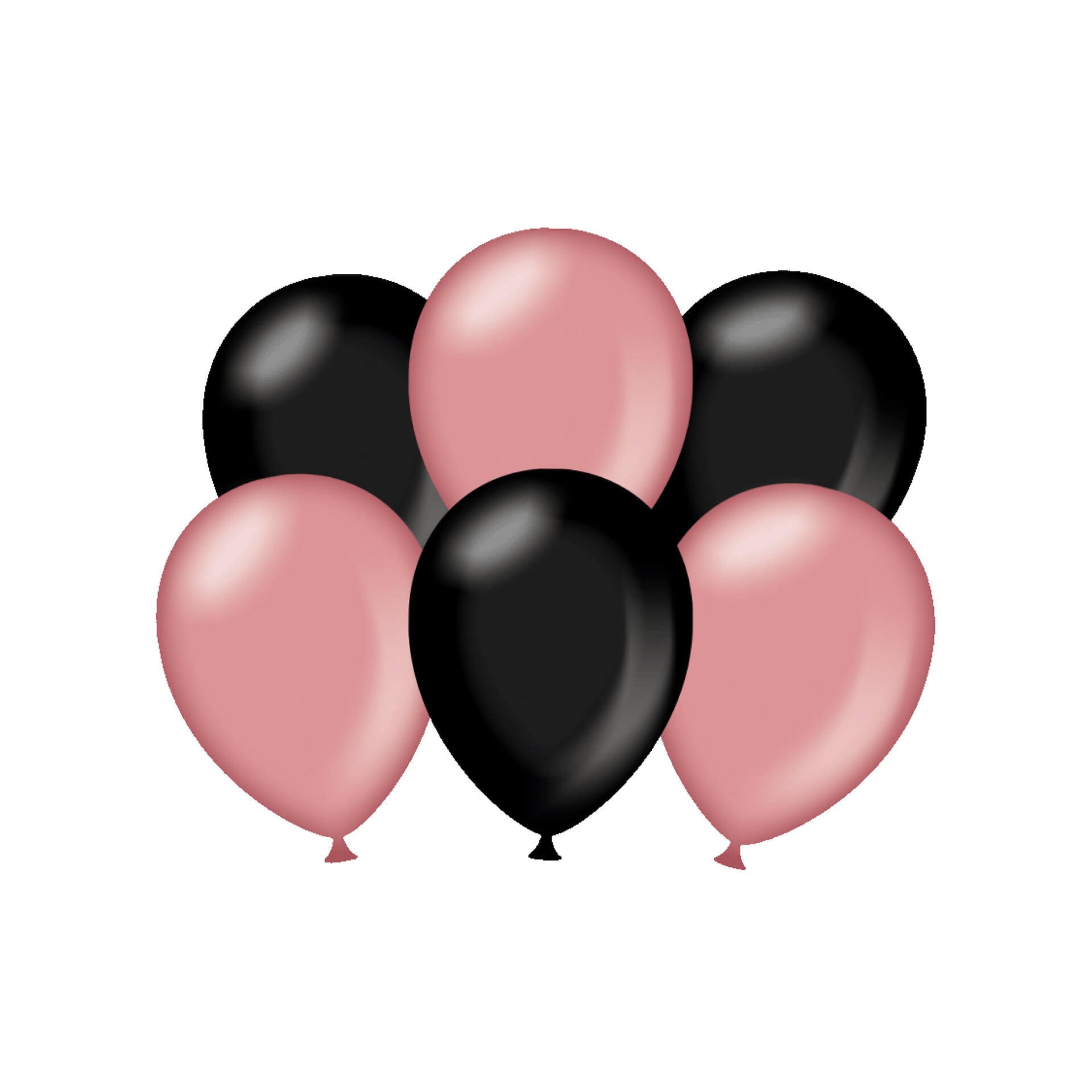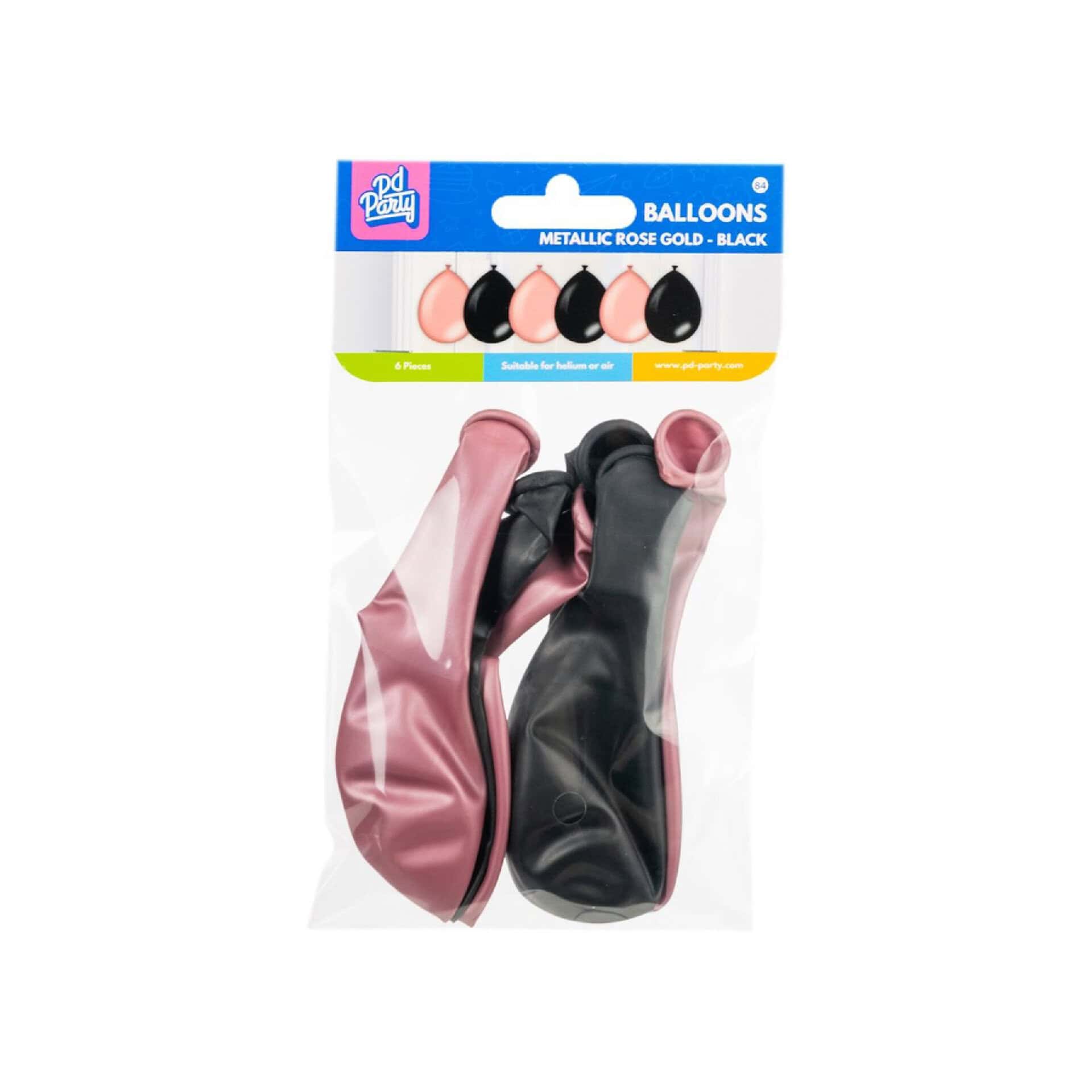 6 x metallikiilto ruusukulta ja musta ilmapallo
